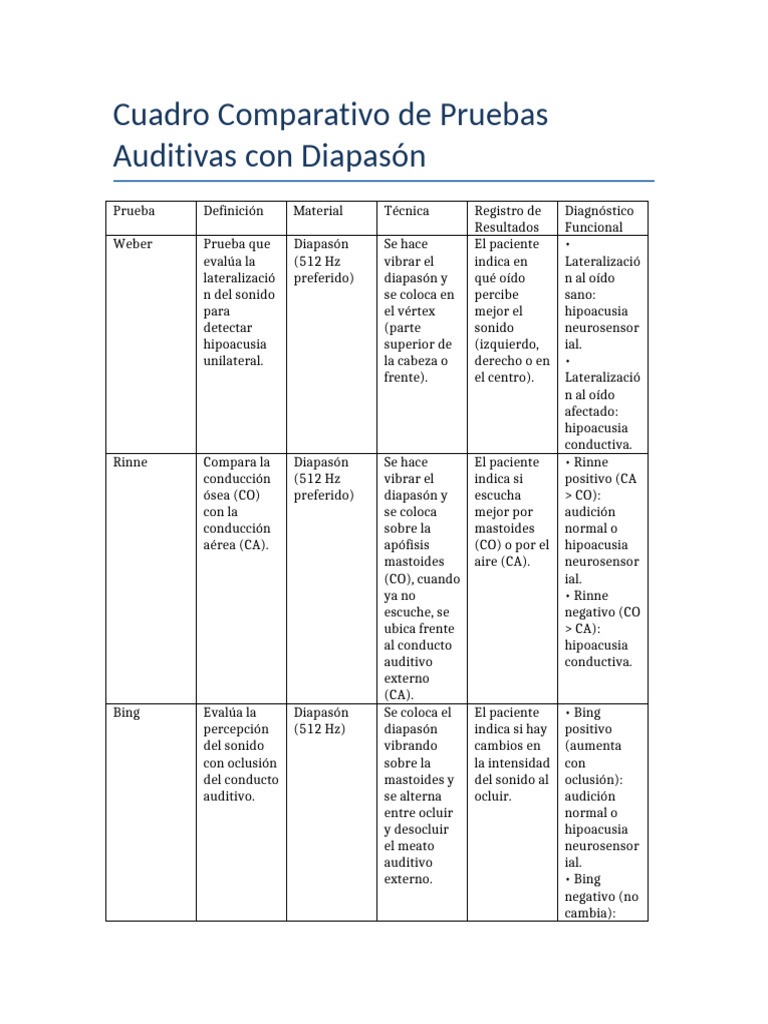 Bing Evalúa la Diapasón Se coloca el El paciente • Bing