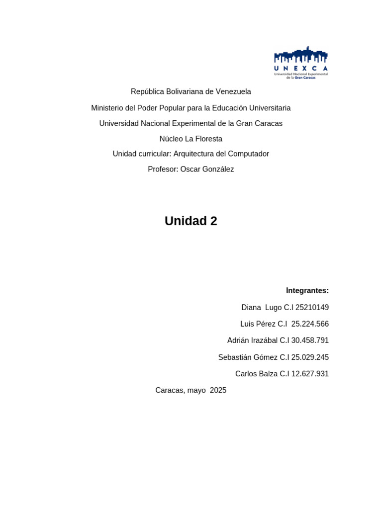 Unidad curricular: Arquitectura del Computador