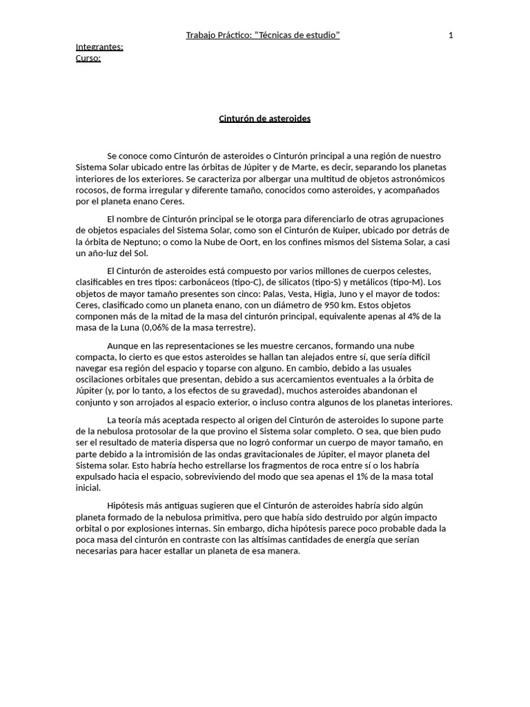 El Cinturón de asteroides está compuesto por varios millones de cuerpos celestes,