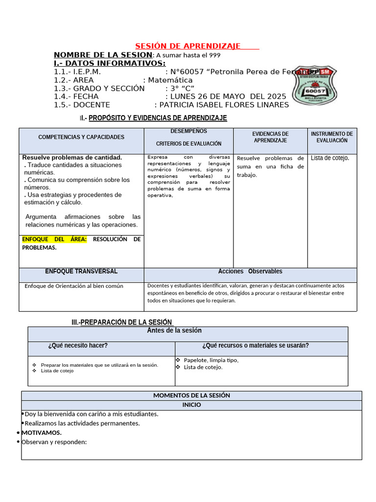 SESIÓN DE APRENDIZAJE