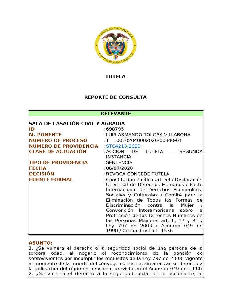NÚMERO DE PROVIDENCIA : STC4213-2020