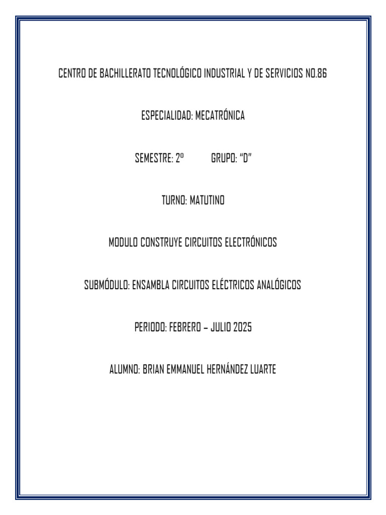 SUBMÓDULO: ENSAMBLA CIRCUITOS ELÉCTRICOS ANALÓGICOS