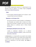 Platón, primero y Aristóteles, después, en tres tipos básicos: monarquía (gobierno de uno),