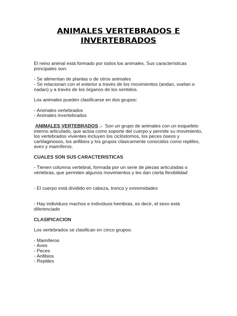 animales vertebrados, los invertebrados carecen de columna vertebral o