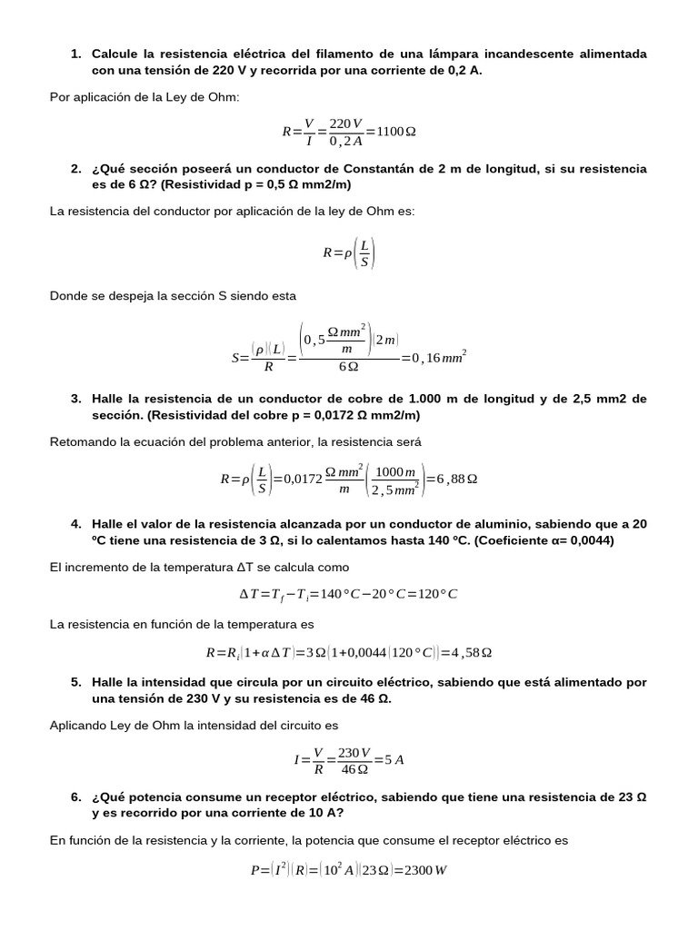 6. ¿Qué potencia consume un receptor eléctrico, sabiendo que tiene una resistencia de 23 Ω