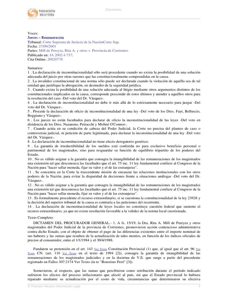 Partes: Mill de Pereyra, Rita A. y otros v. Provincia de Corrientes