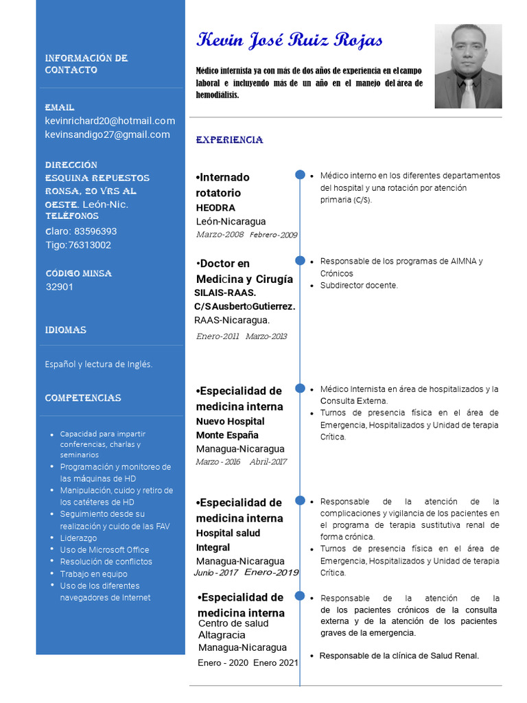 CONTACTO Médico internista ya con más de dos años de experiencia en el campo