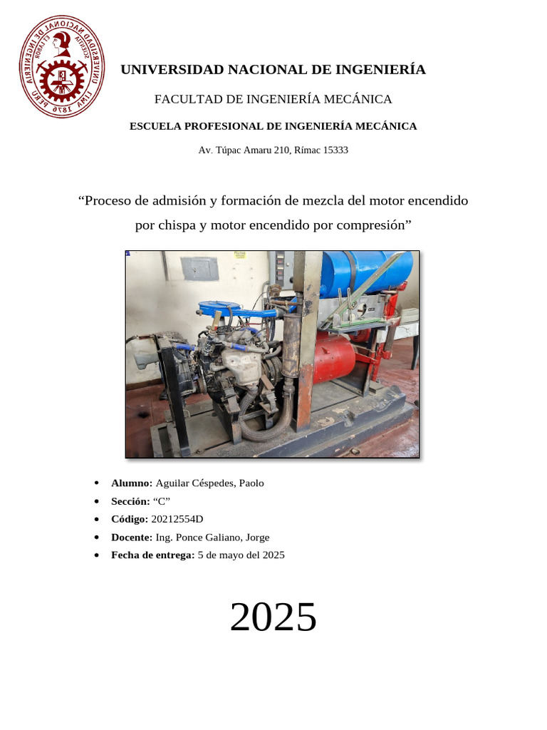 Facultad de Ingeniería Mecánica Motores de Combustión Interna | MN136-C