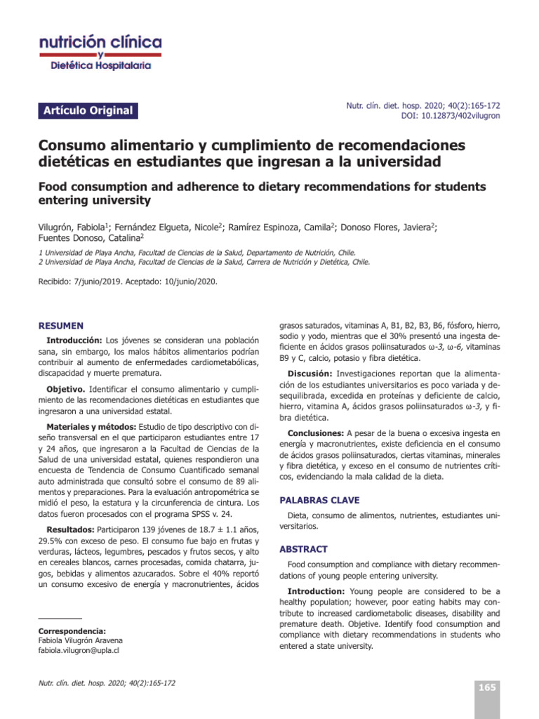 2 Universidad de Playa Ancha, Facultad de Ciencias de la Salud, Carrera de Nutrición y Dietética, Chile.