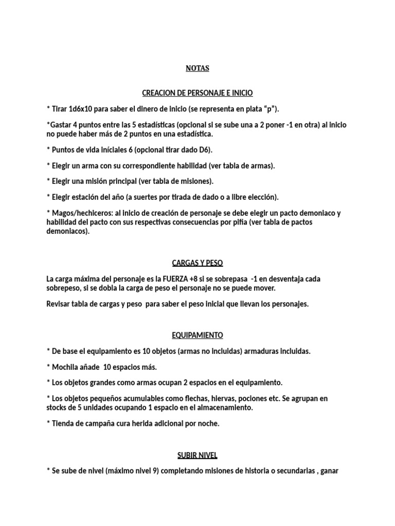 * Magos/hechiceros: al inicio de creación de personaje se debe elegir un pacto demoniaco y