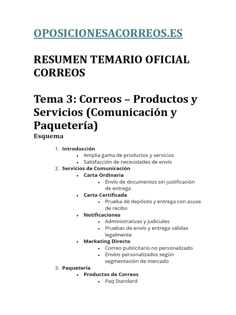 Este tema se enfoca en los productos y servicios que Correos ofrece