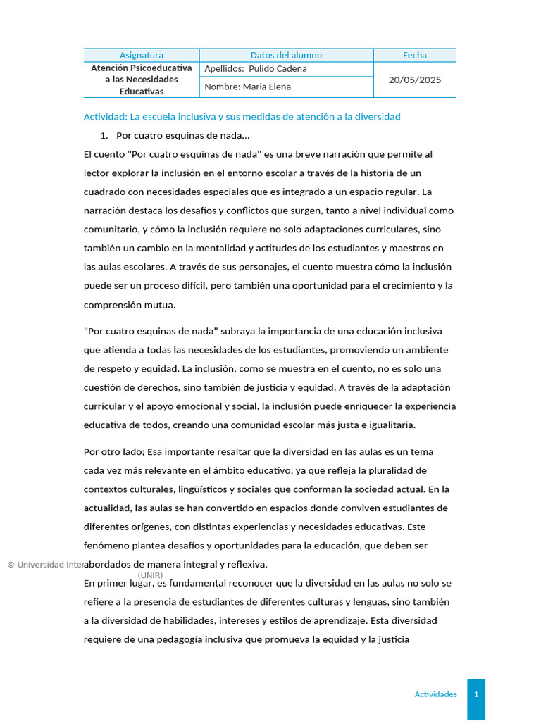 Actividad: La escuela inclusiva y sus medidas de atención a la diversidad