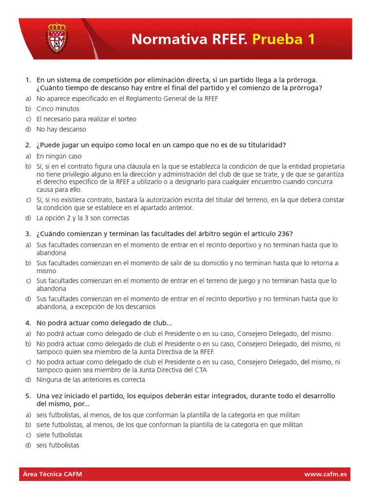 Normativa RFEF. Prueba 1