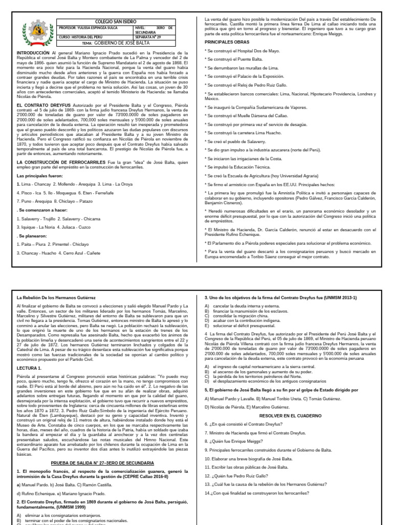 2. El Contrato Dreyfus, firmado en 1869 durante el gobierno de José Balta, persiguió,