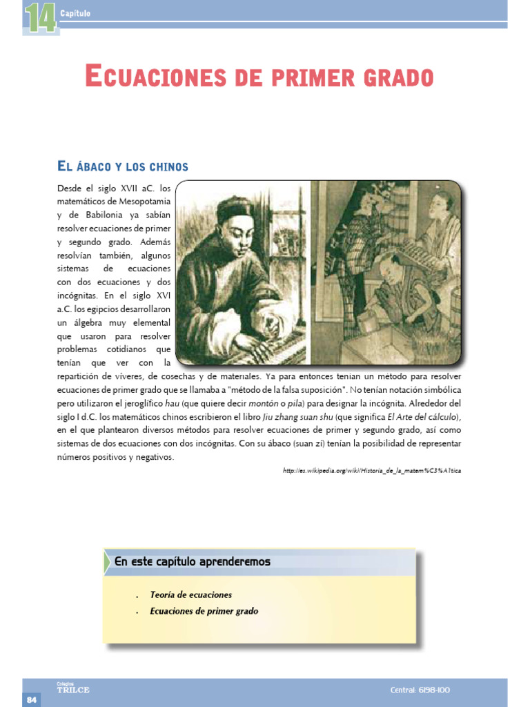 sistemas de dos ecuaciones con dos incógnitas. Con su ábaco (suan zí) tenían la posibilidad de representar