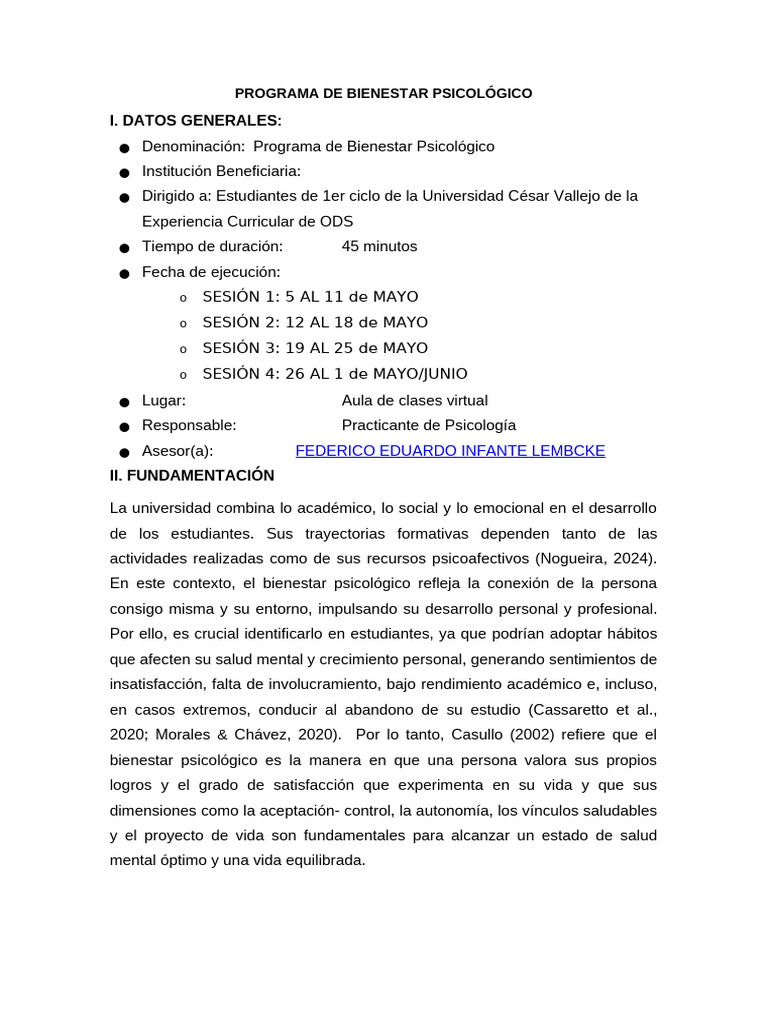 PROGRAMA DE BIENESTAR PSICOLÓGICO
