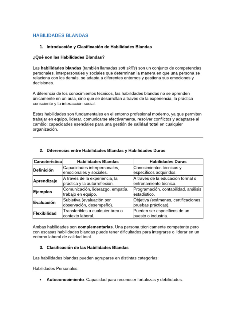 1. Introducción y Clasificación de Habilidades Blandas