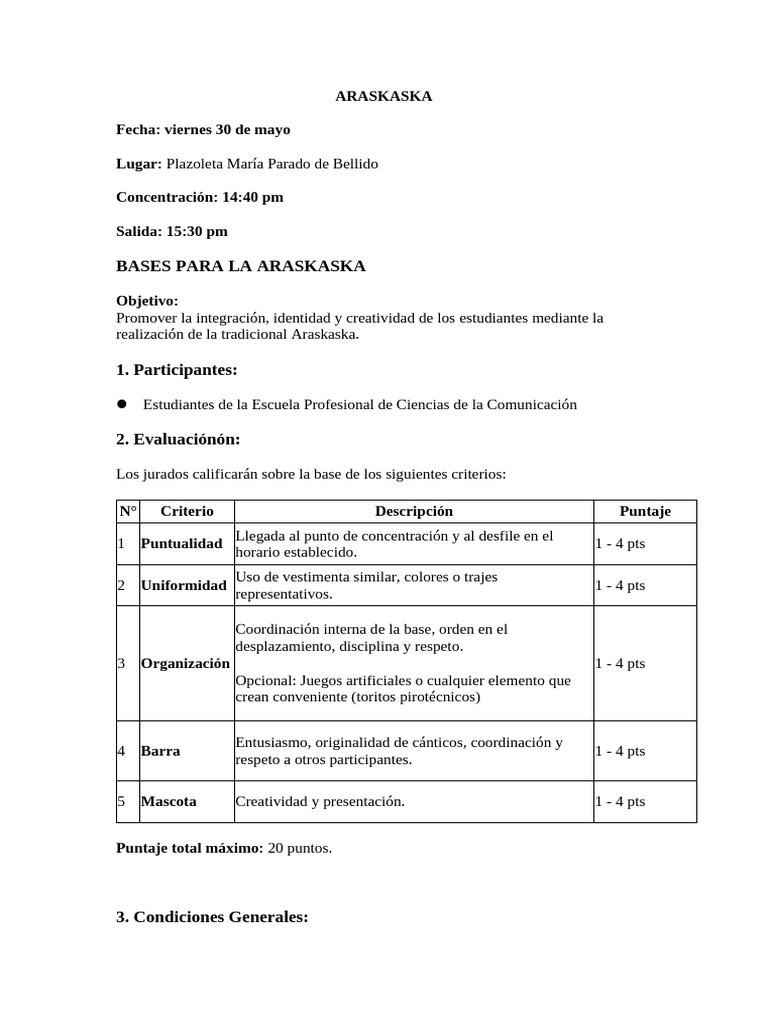 5 Mascota Creatividad y presentación. 1 - 4 pts