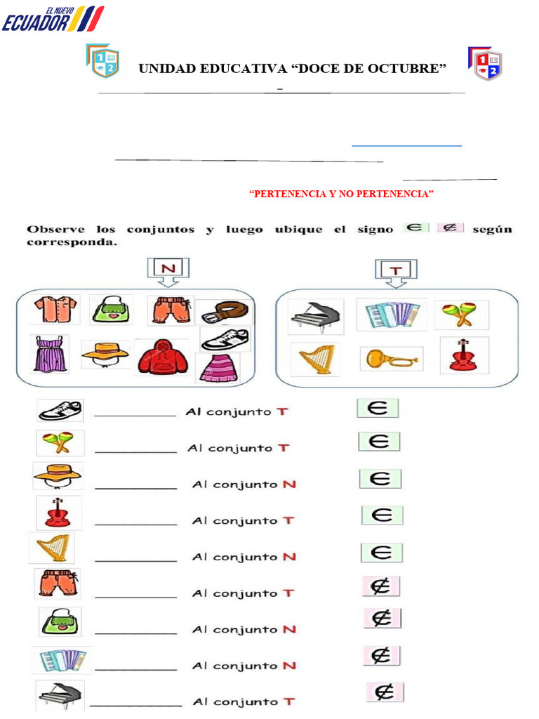 DEBER DE MATEMÁTICA # 2 “PERTENENCIA Y NO PERTENENCIA”