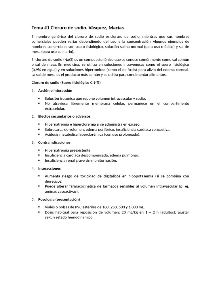 de sodio en agua para inyección, y se usan para reponer volumen y electrolitos en pacientes