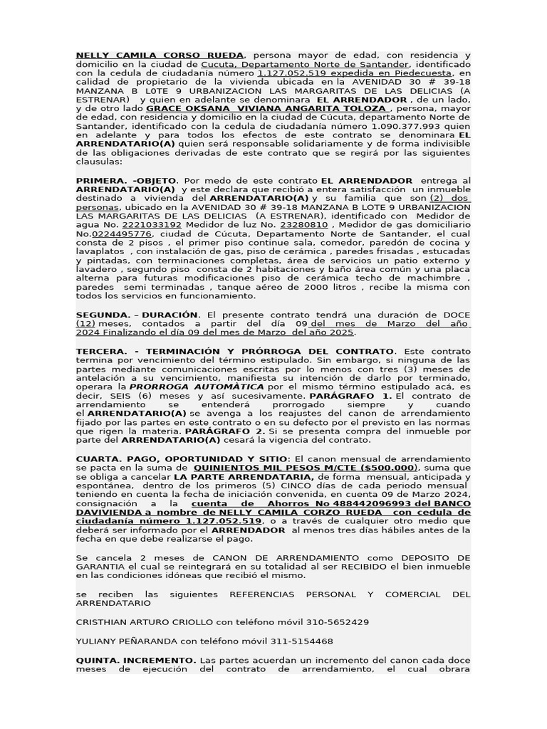 nellyccr12@gmail.com, celular 315-5850062. El ARRENDATARIO calle 7 A numero