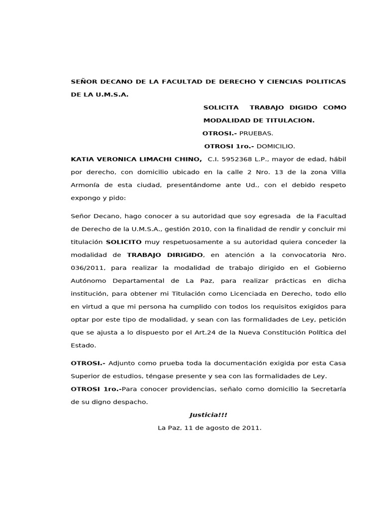optar por este tipo de modalidad, y sean con las formalidades de Ley, petición