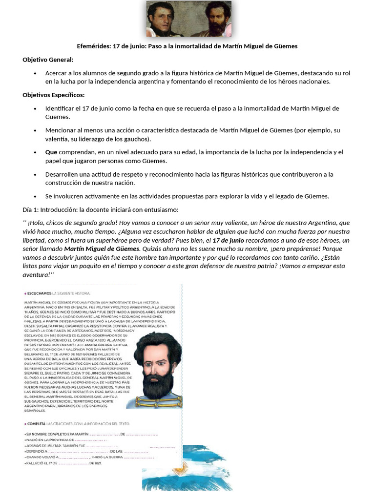 Día 2: Retomamos lo trabajado hasta el momento del súper patriota Martín MIGUEL DE GUEMES.
