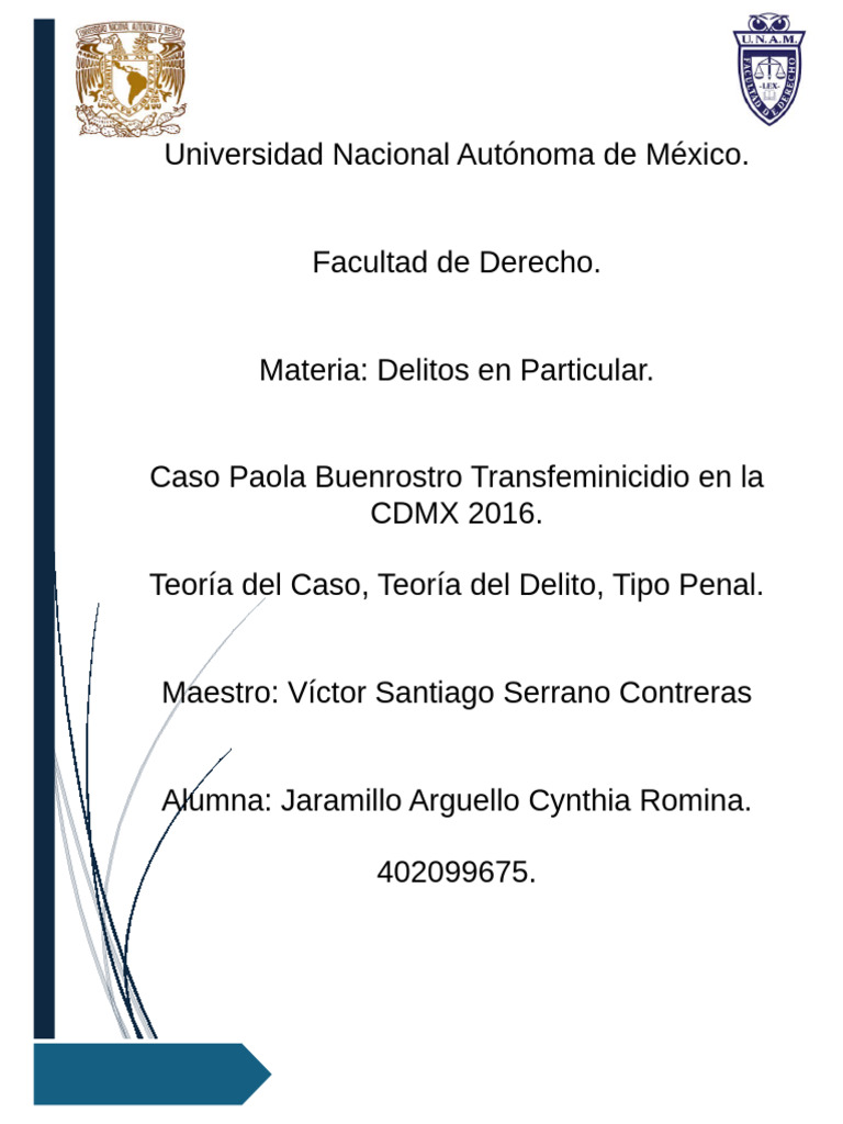 asesinato de Paola Buenrostro. Este tipo penal se establece como un agravante