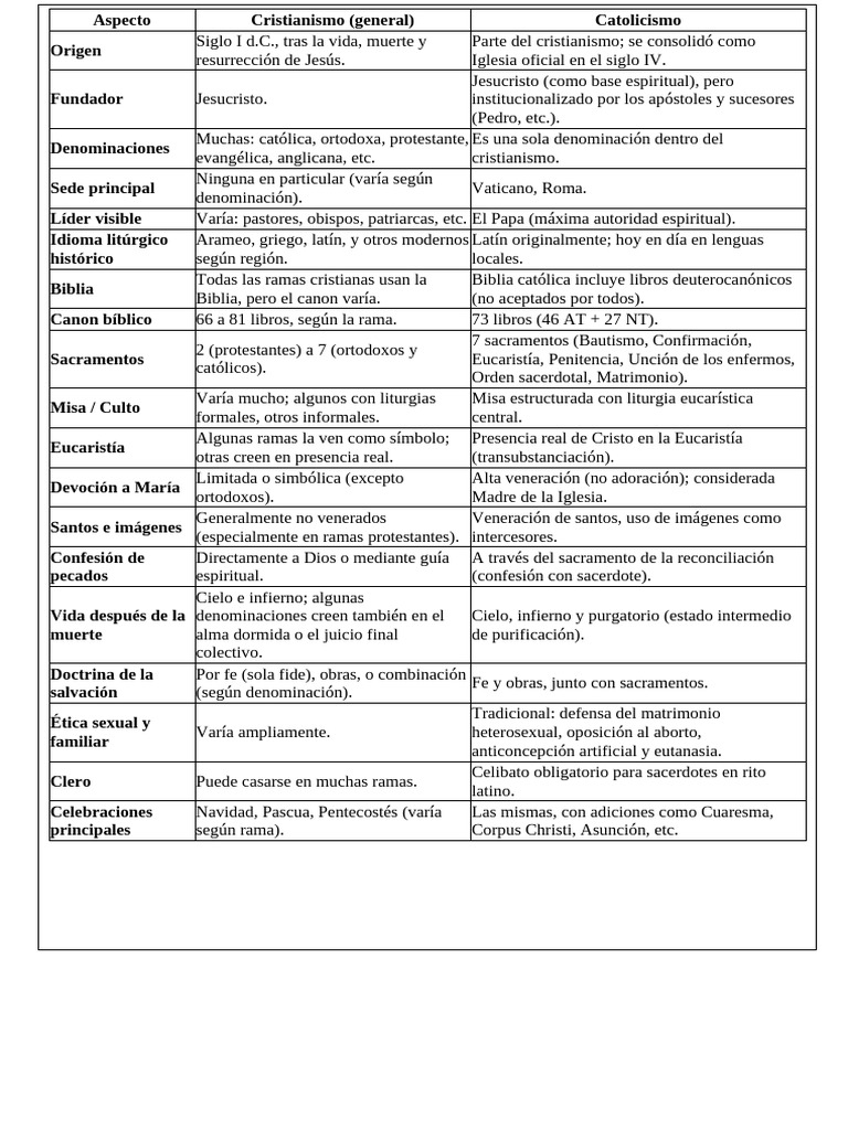 Aspecto Cristianismo (general) Catolicismo