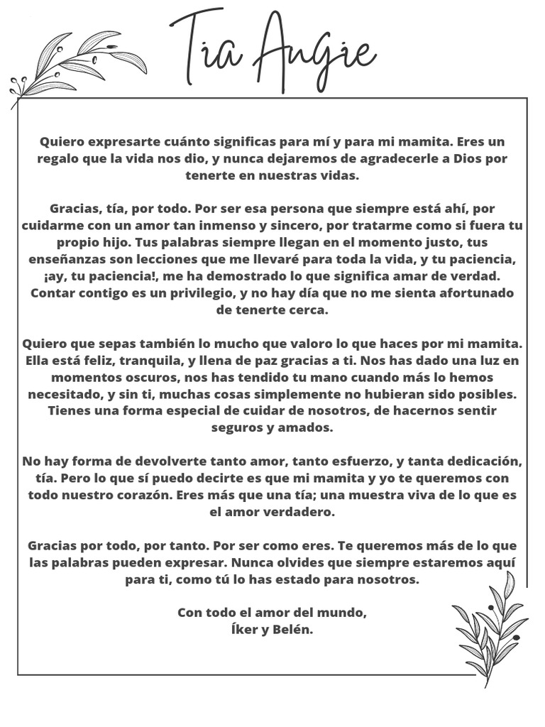 tía. Pero lo que sí puedo decirte es que mi mamita y yo te queremos con