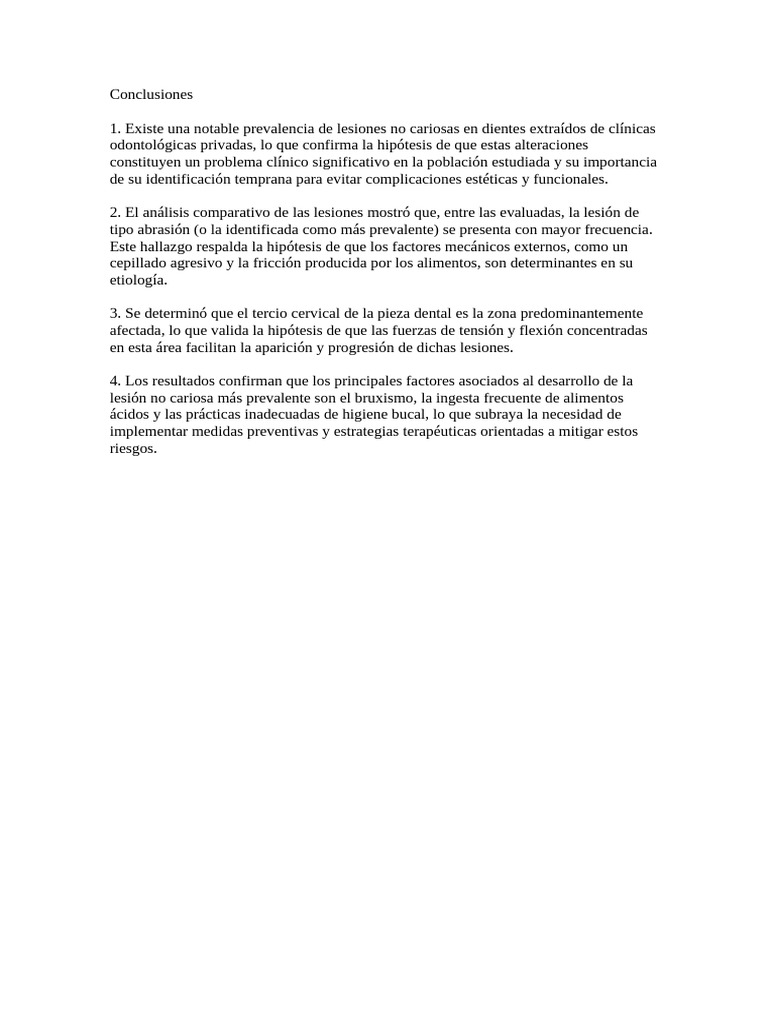 1. Existe una notable prevalencia de lesiones no cariosas en dientes extraídos de clínicas
