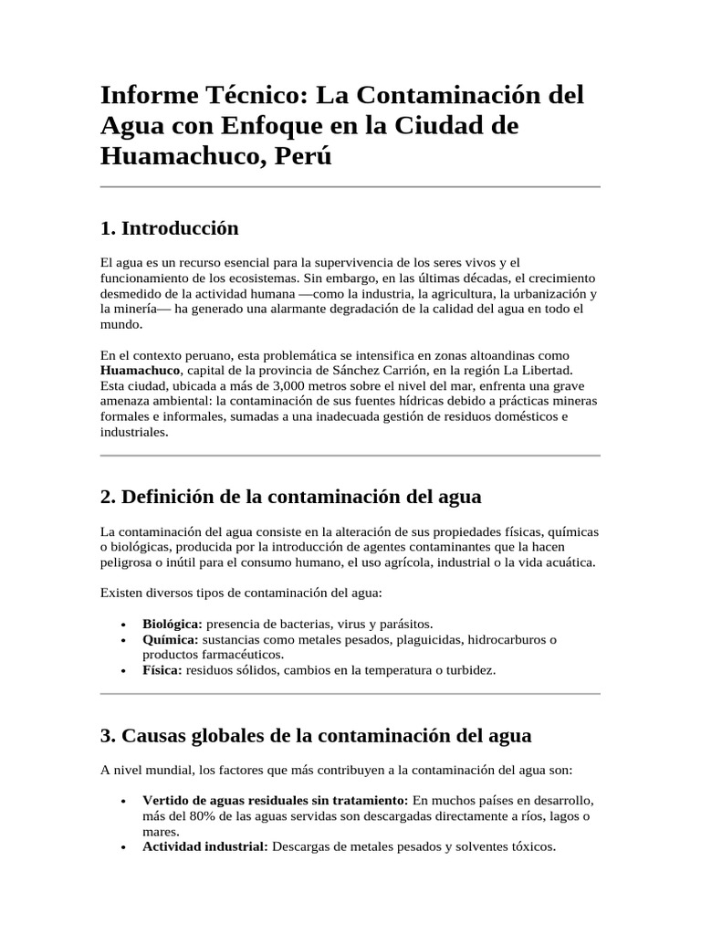 5.2. Fuentes de contaminación del agua en Huamachuco