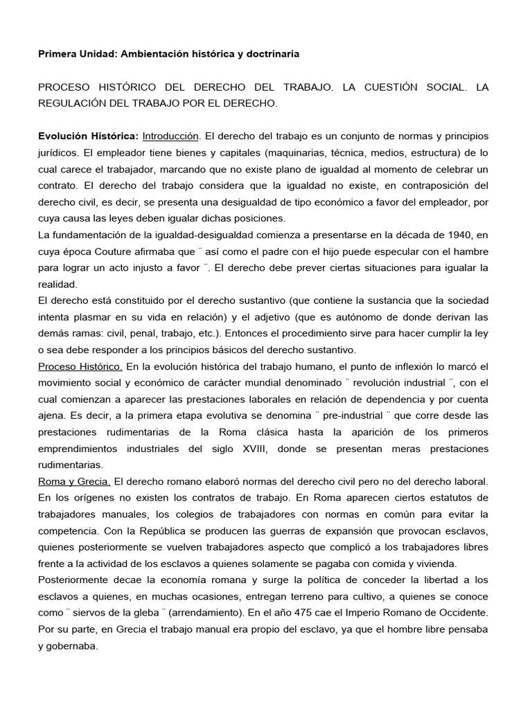 Evolución Histórica: Introducción. El derecho del trabajo es un conjunto de normas y principios