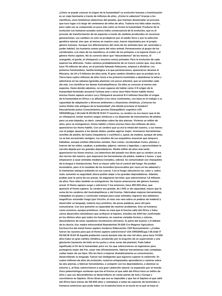 ORÍGENES;[Link] 16 05/06/18 10:04 17 nosotros, su cerebro no era mayor que el de
