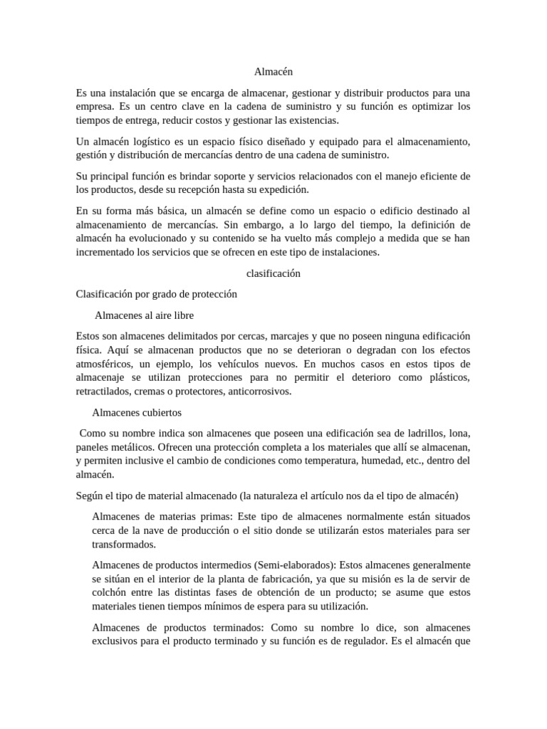 almacenamiento de mercancías. Sin embargo, a lo largo del tiempo, la definición de