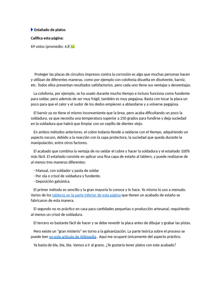 más fácil. El estañado consiste en aplicar una fina capa de estaño al tablero, y puede realizarse de