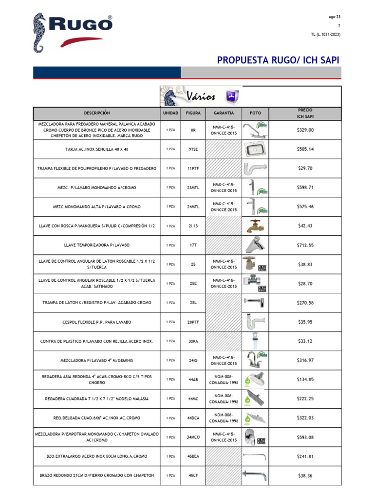 * PARA RESPETAR ESTOS PRECIOS ADJUNTAR ORDEN DE COMPRA DE ICH SAPI