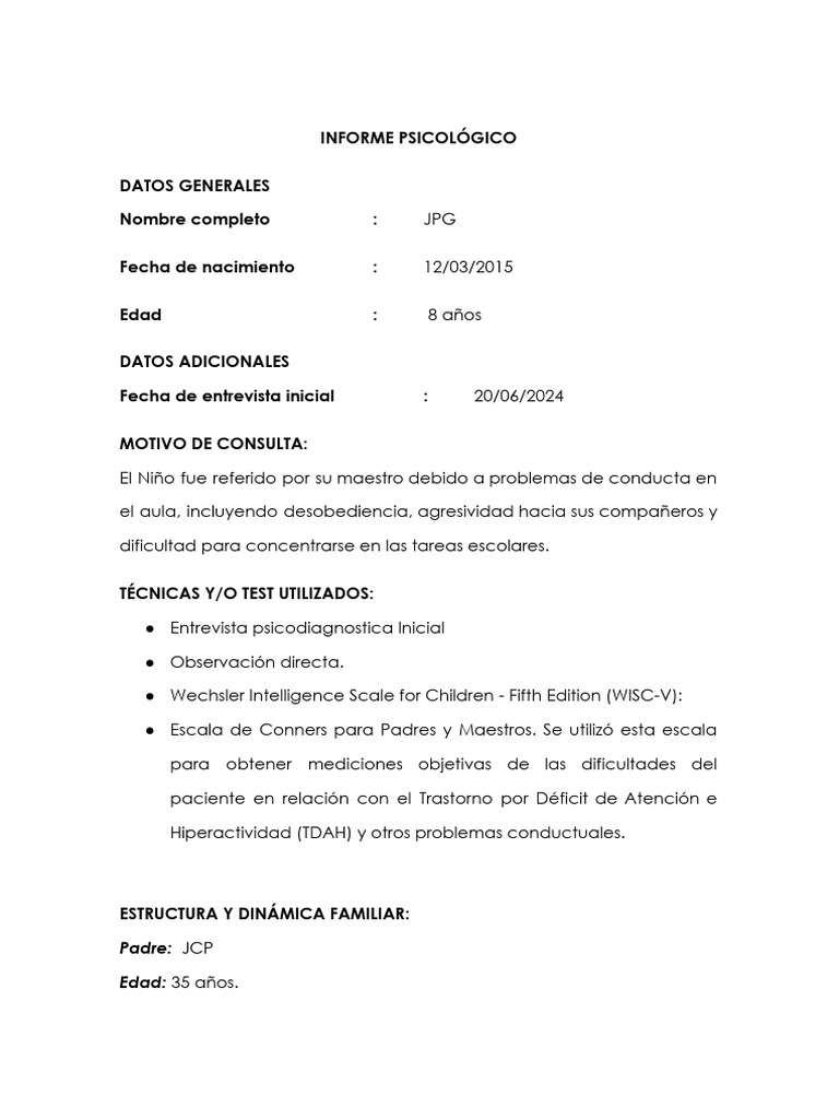 INFORME PSICOLÓGICO