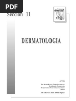 A.2. Lesiones slidas Papula: lesin circunscrita y elevada sobre la superficie cutnea. Roncha o Habon: lesin firme y ligeramente protuberante. Ndulo: lesin protuberante de 1 a 2 centmetros de dimetro. Afecta a la dermis o hipodermis. Tumor: masa slida, no inflamatoria y protuberante. Tiene tendencia al crecimiento y es mayor que el ndulo. A.3. Lesiones de contenido lquido Vescula: es una elevacin de la epidermis, de pared delgada, que contiene un lquido transparente, seroso o hemorrgico. Ampolla: lesin semejante a la vescula, pero de mayor tamao. Pstula. Es semejante a la vescula pero de color pardusco o amarillento. Su contenido es purulento. LESIONES SECUNDARIAS Escama Costra Fisura Erosin o Excoriacin Cicatriz Ulcera