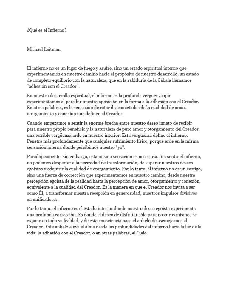 Por lo tanto, el infierno es el estado interior donde nuestro deseo egoísta experimenta