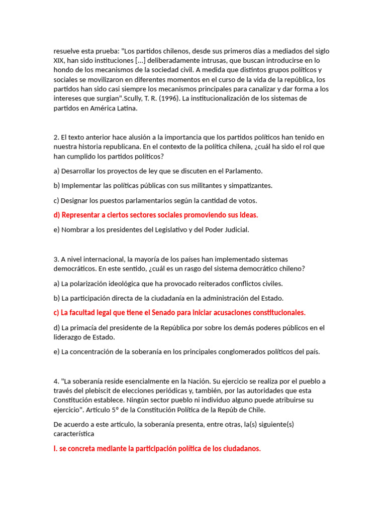 resuelve esta prueba: "Los partidos chilenos, desde sus primeros días a mediados del siglo