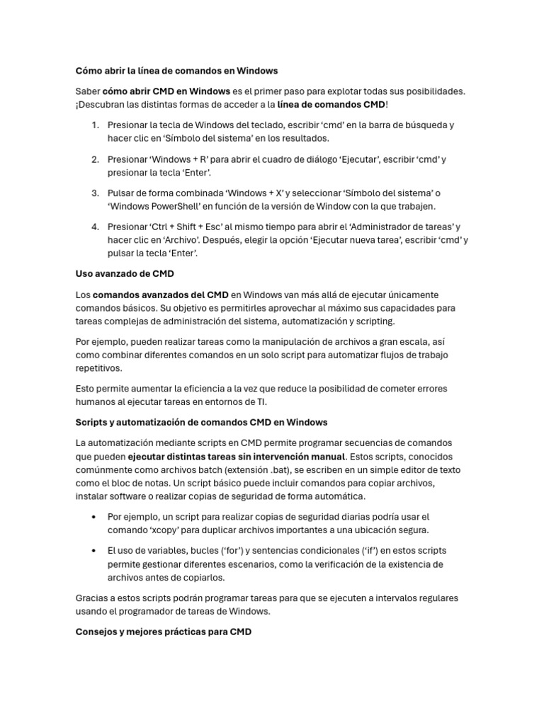 Scripts y automatización de comandos CMD en Windows