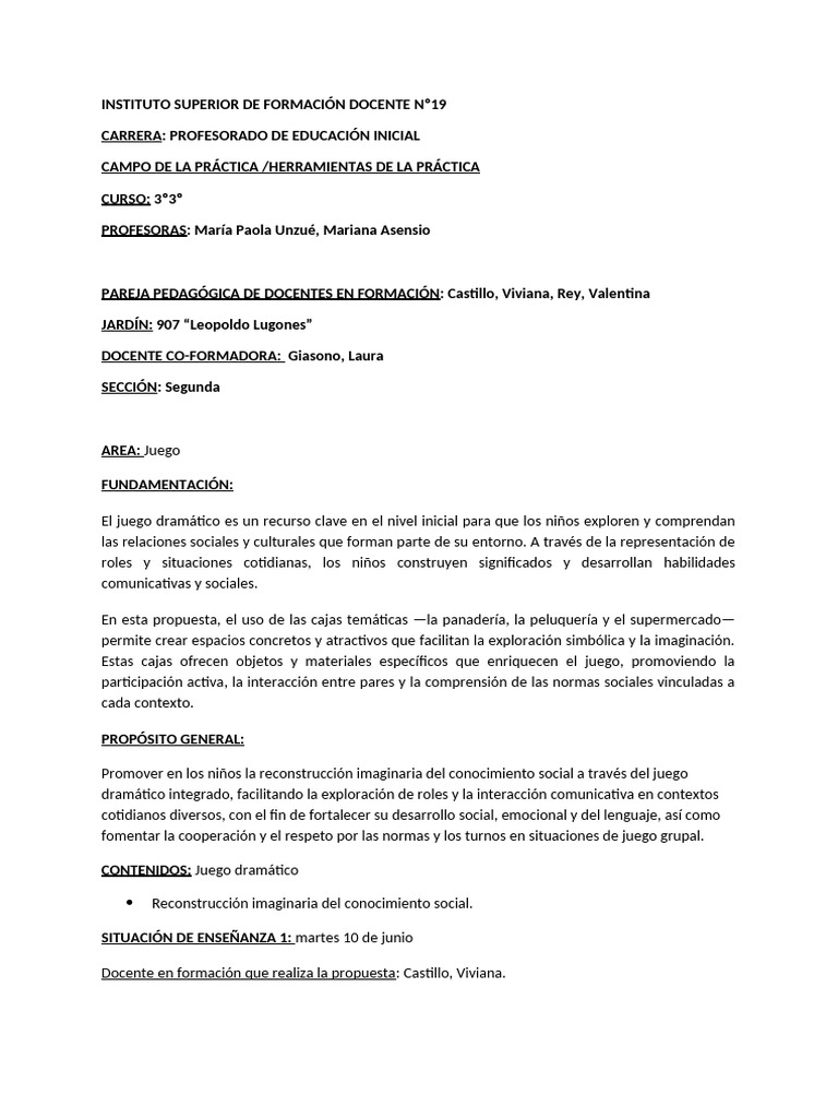 Docente en formación que realiza la propuesta: Castillo, Viviana.