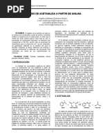 mezclados completamente usando una varilla de vidrio. El beaker fue pesado inicialmente y por lo tanto la cantidad de producto obtenido pudo ser determinada para la simple diferencia de pesos entre el beaker y su contenido final. El producto obtenido es realmente puro. Alternativamente la imina resultante puede ser recristalizada para obtener el precipitado del color naranja necesario. La imina es consecuentemente reducida a amina y luego es convertida a amida mas estable mediante acetilacin. La reduccin es concluida por la adicin de aproximadamente 15mL de etanol al 95% en el beaker que contiene la imina, seguido de una adicin de 0.10 g de borohidruro de sodio lentamente para tener control de la reaccin. La imina es parcialmente soluble en etanol, pero el producto es completamente soluble. Una perdida de color en le solucin es indicativo de que la reaccin ha terminado. La amina puede ser aislada en este punto, pero nosotros convertimos la amina directamente en su correspondiente derivado de acetamida. La adicin de aproximadamente 2mL de acido actico glacial a la solucin de etanol de la amina, neutralizar la solucin bsica y destruir el exceso de borohidruro de sodio. El anhdrido actico (2Ml) es agregado a la mezcla y calentado y en bao de agua caliente por 510 minutos. La amida resultante precipita cuando se agregan lentamente 75mL de agua fra a la solucin. El producto es un solido incoloro, el cual es obtenido por filtracin al vaco y analizado por IR o RMN y con su punto de fusin. El rendimiento de la reaccin esta en un regano del 80-90%. Una pequea cantidad del producto puede ser recristalizada con hexanos. Peligros Este experimento debe ser realizado en un lugar con buena ventilacin. El acido actico y el anhdrido actico son corrosivos. La toluidina es altamente toxica y las aminas orgnicas son potencialmente carcinognicas. Conclusion Nosotros hemos presentado una eficiente secuencia de aminacion reductiva, la cual incluye la sntesis de la imina, seguida de la transformacin de la amina en su derivado de amida. Los estudiantes encontraron fascinante esta reaccin y la encontraron muy til para ilustrar la importancia de la aminacion reductiva en la sntesis orgnica. As mismo se introdujeron conceptos de qumica verde y conceptos de reacciones solido-solido.