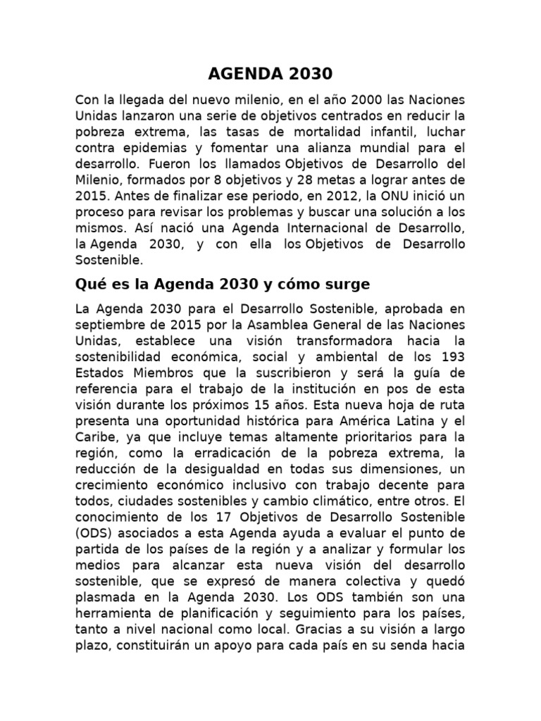 la Agenda 2030, y con ella los Objetivos de Desarrollo