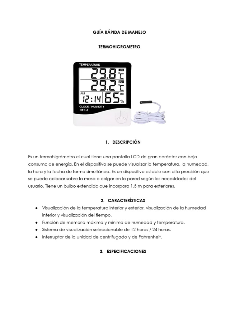 Es un termohigrómetro el cual tiene una pantalla LCD de gran carácter con bajo