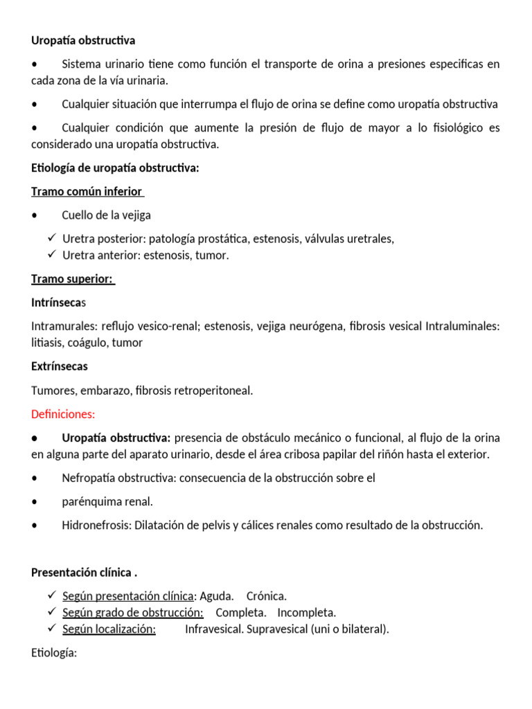 • Cualquier situación que interrumpa el flujo de orina se define como uropatía obstructiva
