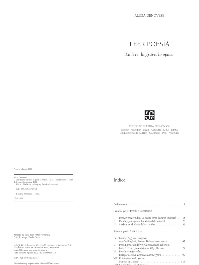 Leer poesía : lo leve, lo grave, lo opaco . - 1a ed. - Buenos Aires : Fondo