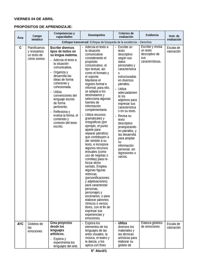 C Planificamos Escribe diversos - Adecúa el texto a - Escribe un Escribe y revisa Escala de