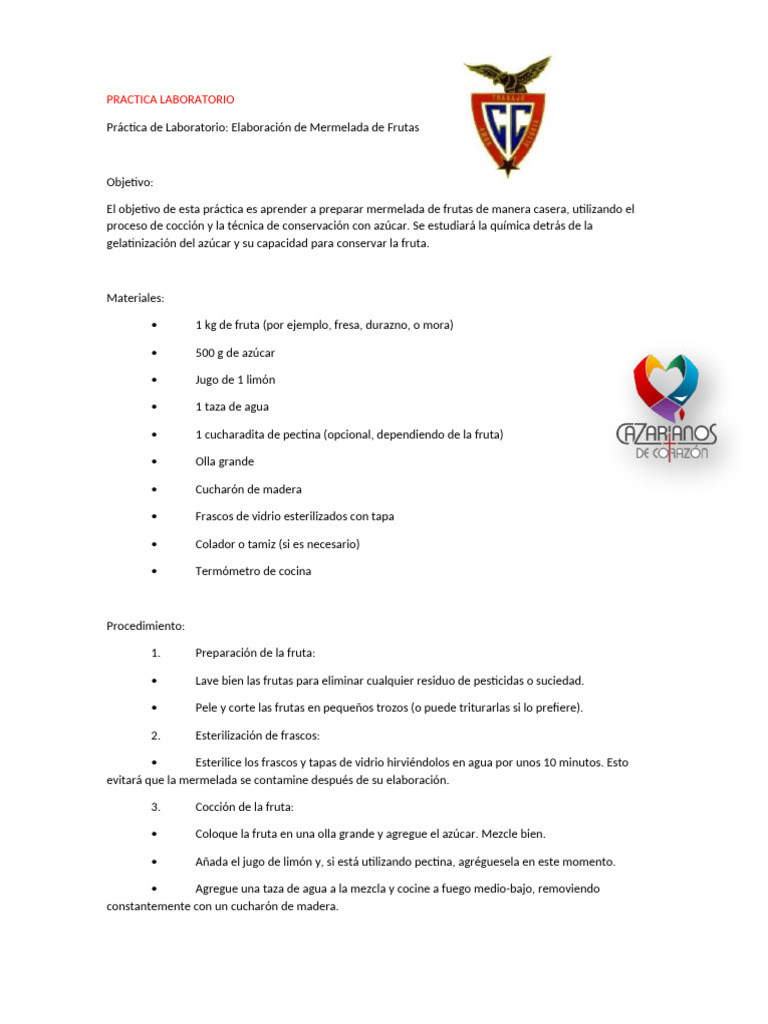 El objetivo de esta práctica es aprender a preparar mermelada de frutas de manera casera, utilizando el